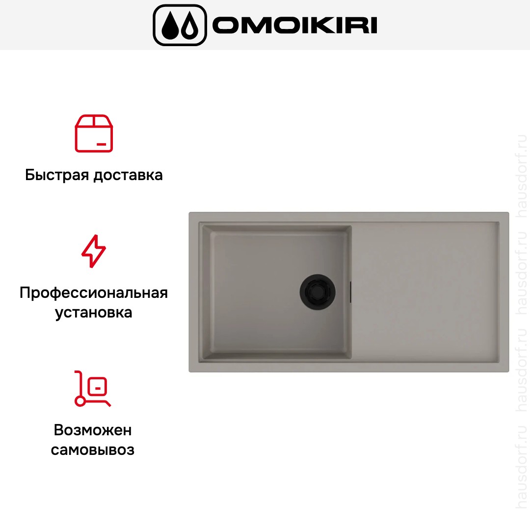 Обратите внимание на дизайнерские отличия мойки Омойкири, которые помогут в создании идеальной кухни в вашем доме. Она выполнена в цвете Серый Ленинград. Крыло, расположенное слева, является дополнительным рабочим пространством, на котором можно сушить посуду, разделывать мясо и нарезать овощи.