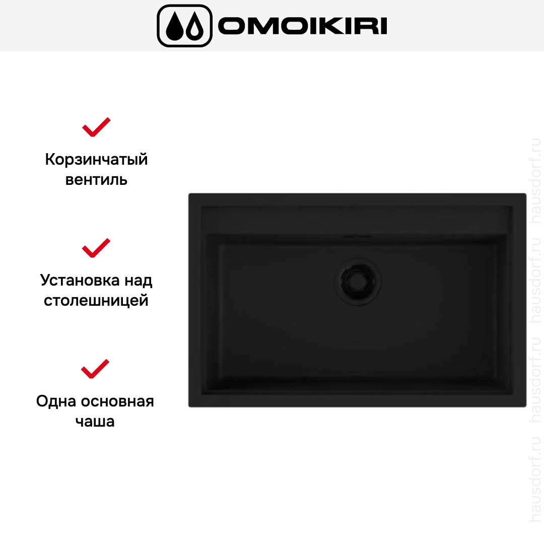 Накладная мойка Omoikiri — отличный выбор для тех, кто хочет создать гармоничное пространство с удобной сантехникой. простой в установке. Преимущество такой конструкции: легко подобрать практически к любой кухне и не придется демонтировать вместе с тумбой при ремонте или перестановке остальной мебели. Данная модель имеет стандартную форму, поэтому подходит большинству пользователей. Устанавливается над столешницей: это самый простой способ монтажа, зачастую с ним можно справиться даже без специалистов, главное — правильно рассчитать размеры ниши.