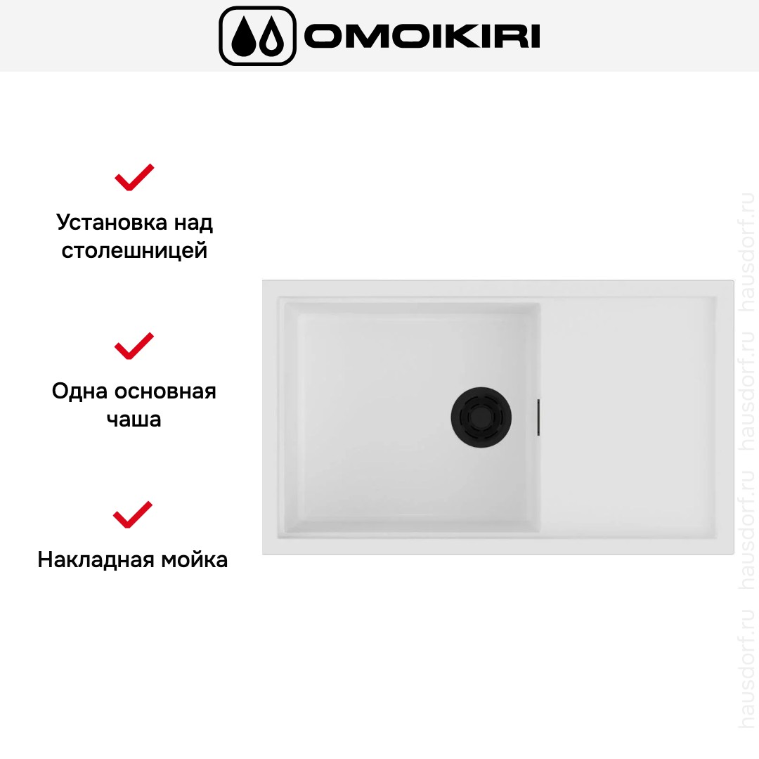 Накладная мойка Omoikiri — отличный выбор для тех, кто хочет создать гармоничное пространство с удобной сантехникой. простой в установке. Преимущество такой конструкции: легко подобрать практически к любой кухне и не придется демонтировать вместе с тумбой при ремонте или перестановке остальной мебели. Данная модель имеет стандартную форму, поэтому подходит большинству пользователей. Устанавливается над столешницей: это самый простой способ монтажа, зачастую с ним можно справиться даже без специалистов, главное — правильно рассчитать размеры ниши.