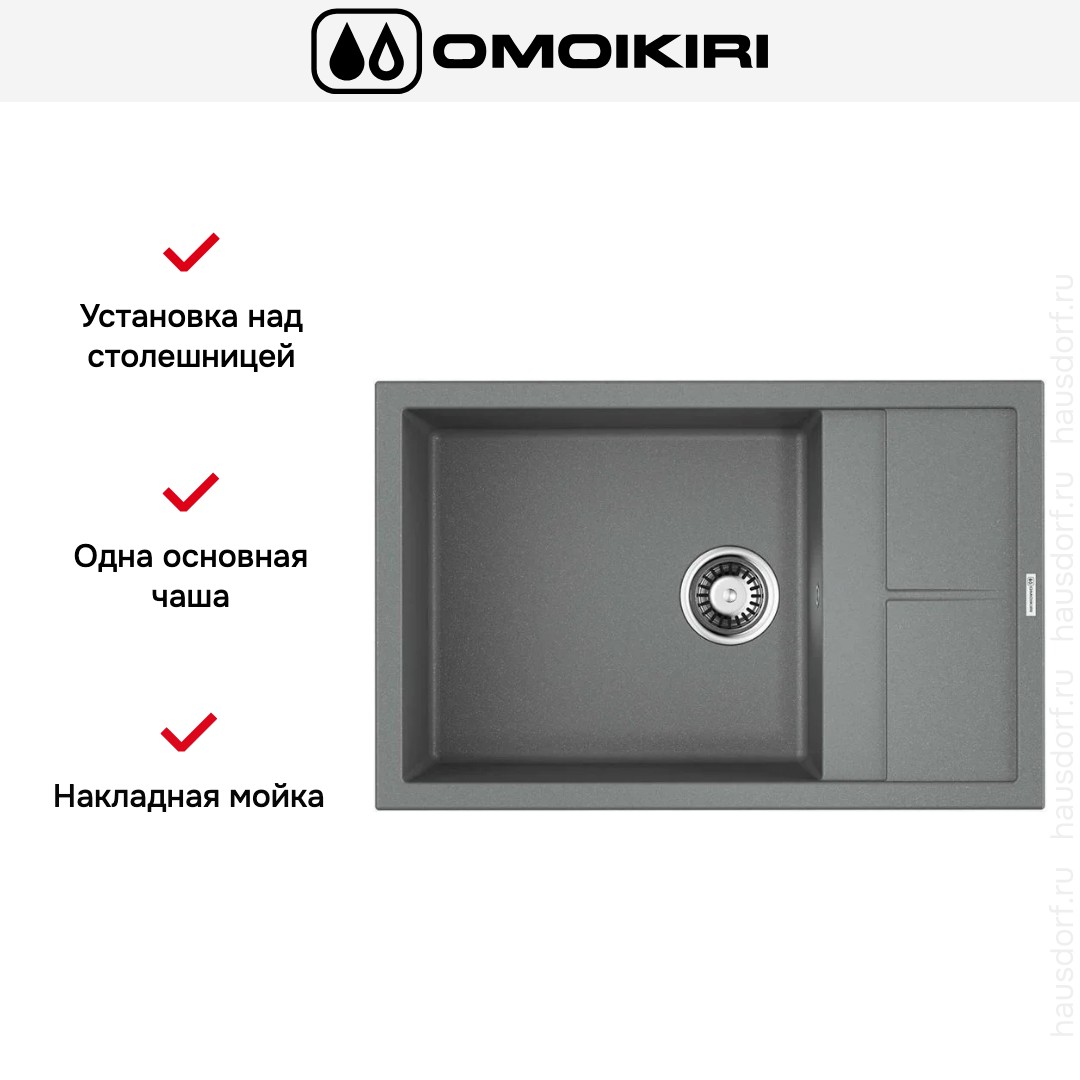 Обратите внимание на дизайнерские отличия мойки Омойкири, которые помогут в создании идеальной кухни в вашем доме. Она выполнена в цвете Серый Ленинград. Крыло, расположенное является дополнительным рабочим пространством, на котором можно сушить посуду, разделывать мясо и нарезать овощи.