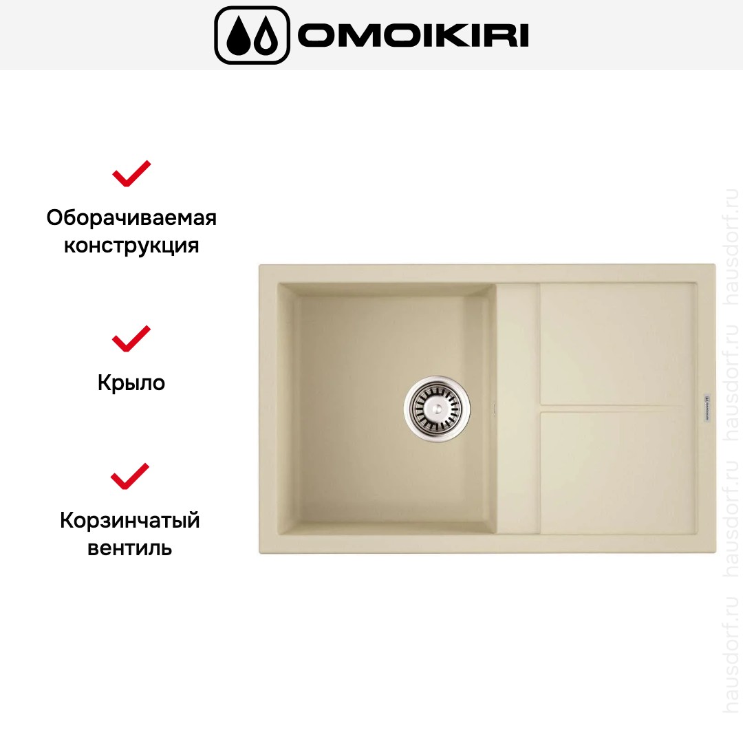 Обратите внимание на дизайнерские отличия мойки Омойкири, которые помогут в создании идеальной кухни в вашем доме. Она выполнена в цвете ваниль. Крыло, расположенное является дополнительным рабочим пространством, на котором можно сушить посуду, разделывать мясо и нарезать овощи.