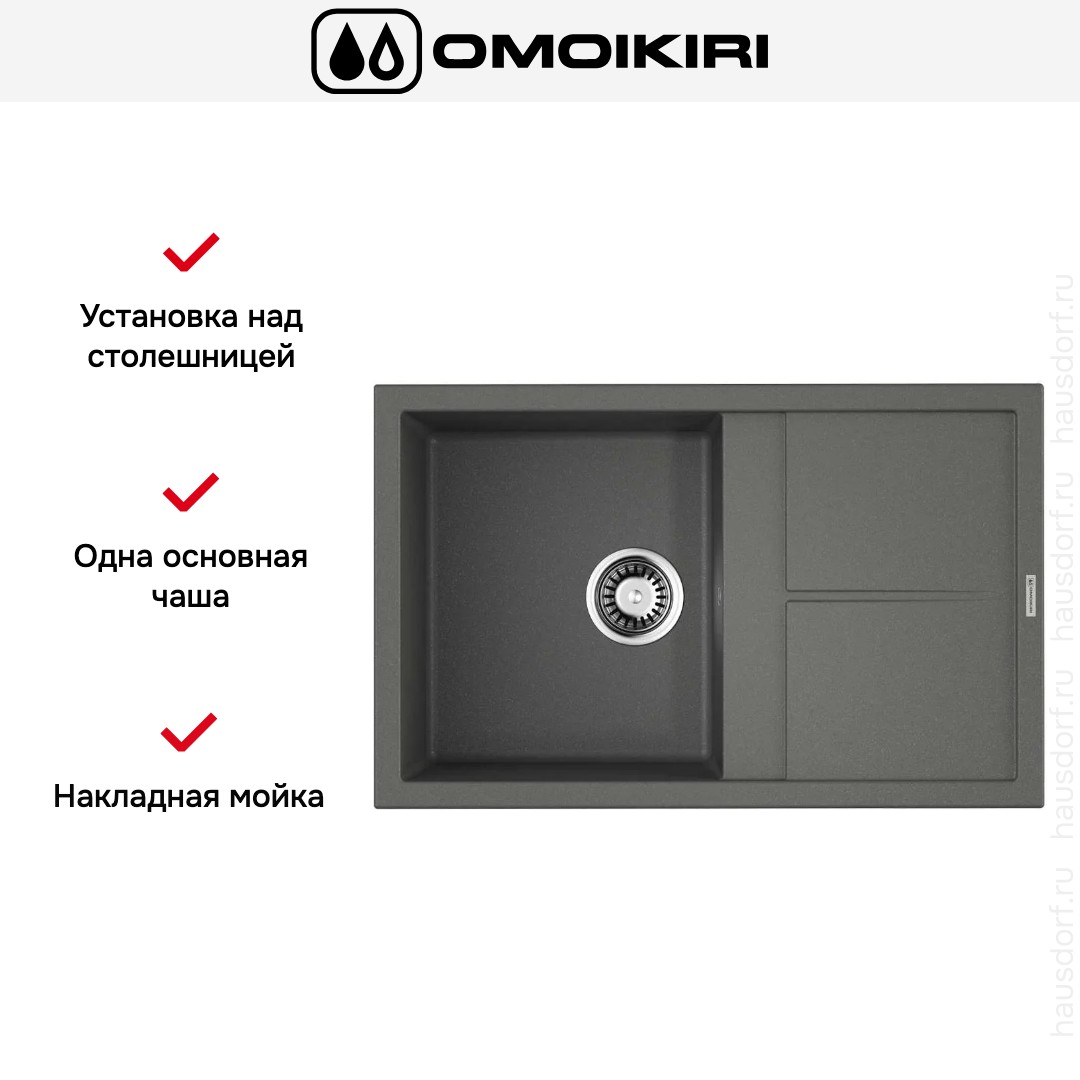 Накладная мойка Omoikiri — отличный выбор для тех, кто хочет создать гармоничное пространство с удобной сантехникой. простой в установке. Преимущество такой конструкции: легко подобрать практически к любой кухне и не придется демонтировать вместе с тумбой при ремонте или перестановке остальной мебели. Данная модель имеет стандартную форму, поэтому подходит большинству пользователей. Устанавливается над столешницей: это самый простой способ монтажа, зачастую с ним можно справиться даже без специалистов, главное — правильно рассчитать размеры ниши.