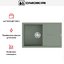 Прямоугольная накладная мойка серо-зеленого цвета выглядит сдержанно и небанально: широкая панель 79×50 см с интегрированным крылом формирует единое рабочее поле над столешницей. Линии ровные, пропорции выверены, за счет чего модель легко вписывается в кухонный гарнитур.