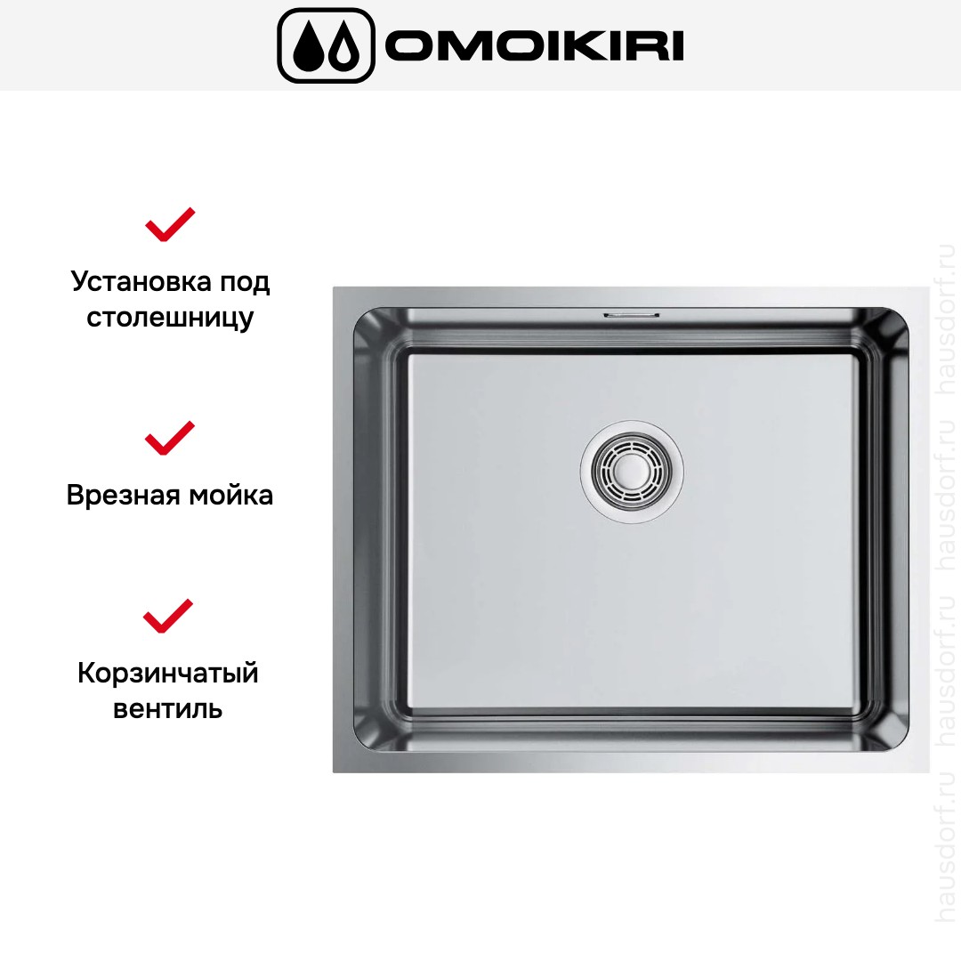 Врезная мойка Omoikiri — отличный выбор для тех, кто хочет создать гармоничное кухонное пространство с полностью вписывающейся в него сантехникой. Преимущество такой конструкции — плотное прилегание к столешнице, так как вырез подбирается индивидуально под габариты модели. Под стыки не попадает вода, поэтому срок службы значительно увеличивается, пользоваться ей удобно и приятно. Данная модель имеет стандартную форму, поэтому подходит большинству пользователей. Устанавливается под столешницу, благодаря чему не остается стыков, в которых копились бы загрязнения, а также увеличивается рабочая глубина. Устанавливается над столешницей: это самый простой способ монтажа, зачастую с ним можно справиться даже без специалистов, главное — правильно рассчитать размеры ниши.
