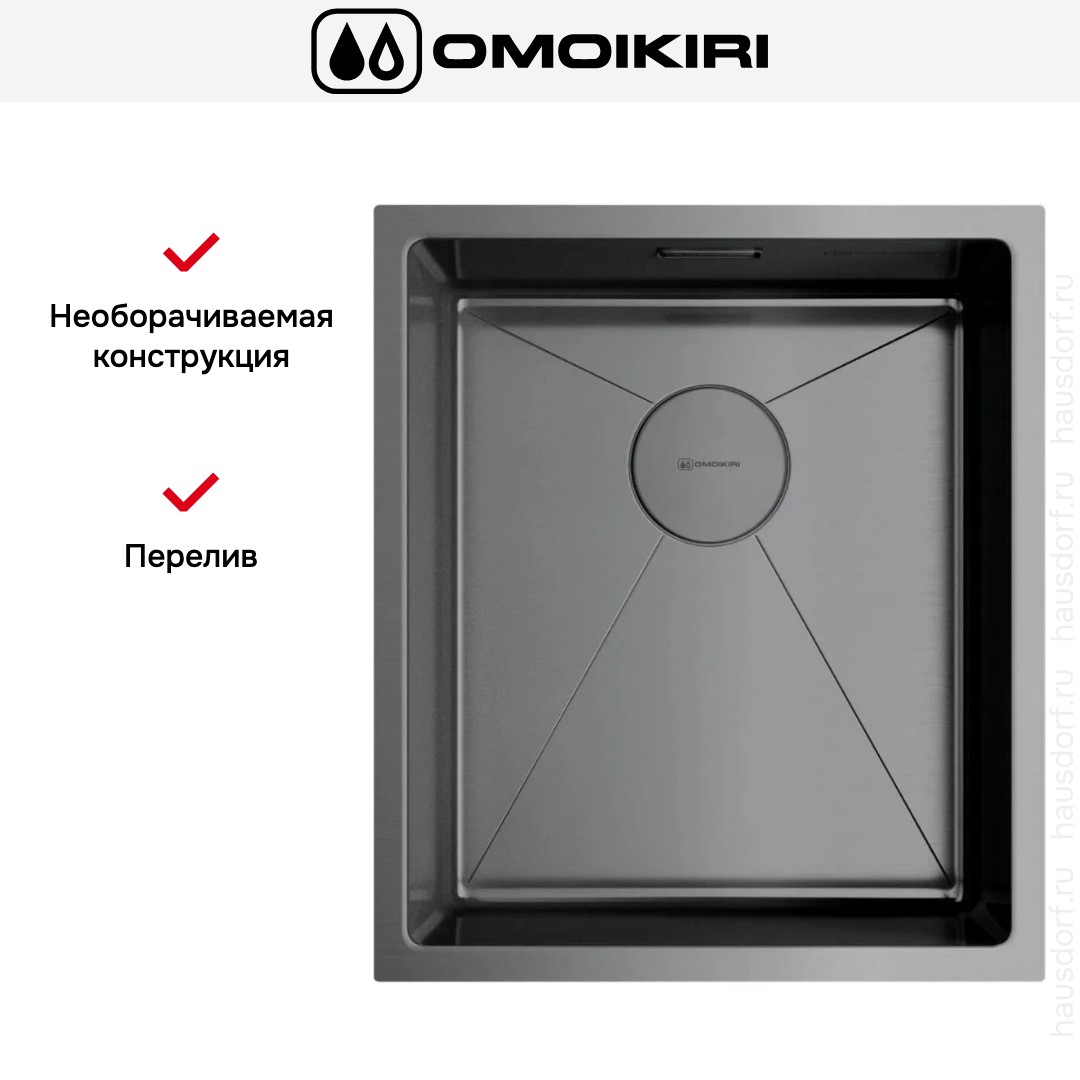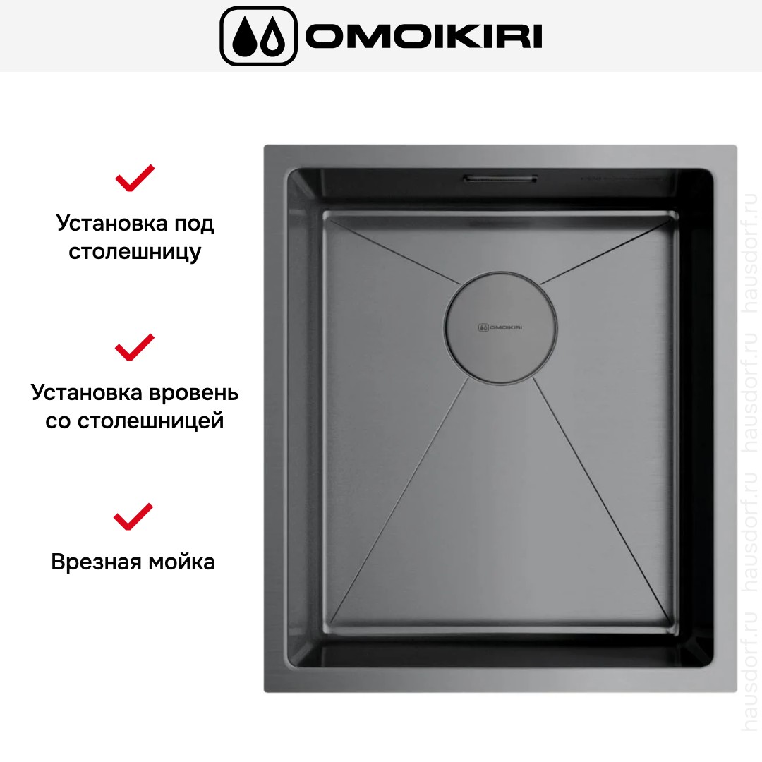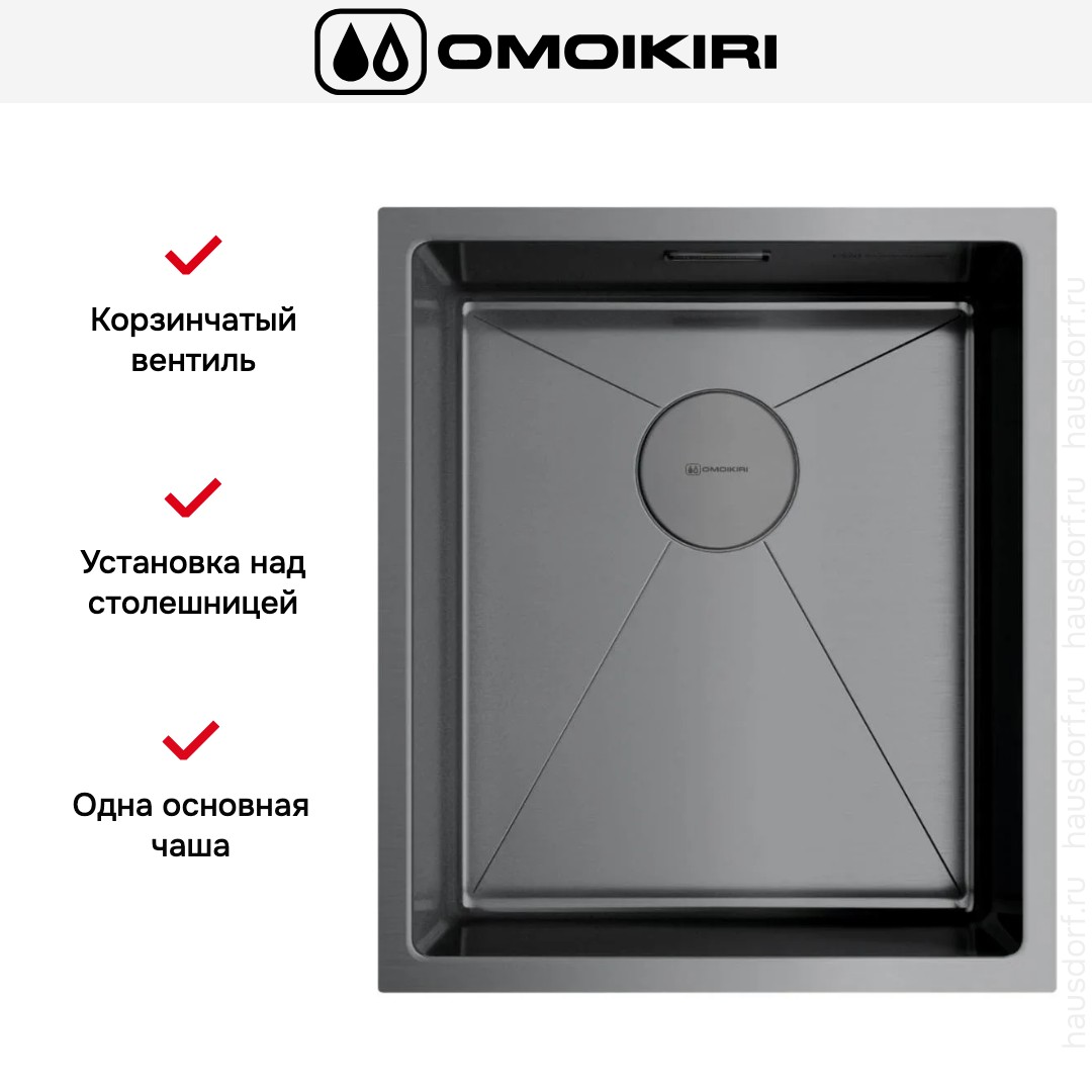 Обратите внимание на дизайнерские отличия мойки Омойкири, которые помогут в создании идеальной кухни в вашем доме. Она выполнена в цвете вороненая сталь. Основной материал — нержавеющая сталь, он гарантирует надежность и долгие годы службы без повреждений.