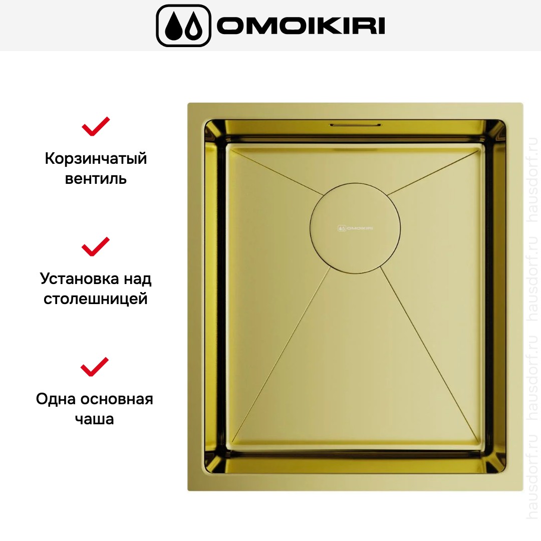 Обратите внимание на дизайнерские отличия мойки Омойкири, которые помогут в создании идеальной кухни в вашем доме. Она выполнена в цвете светлое золото. Основной материал — нержавеющая сталь, он гарантирует надежность и долгие годы службы без повреждений.