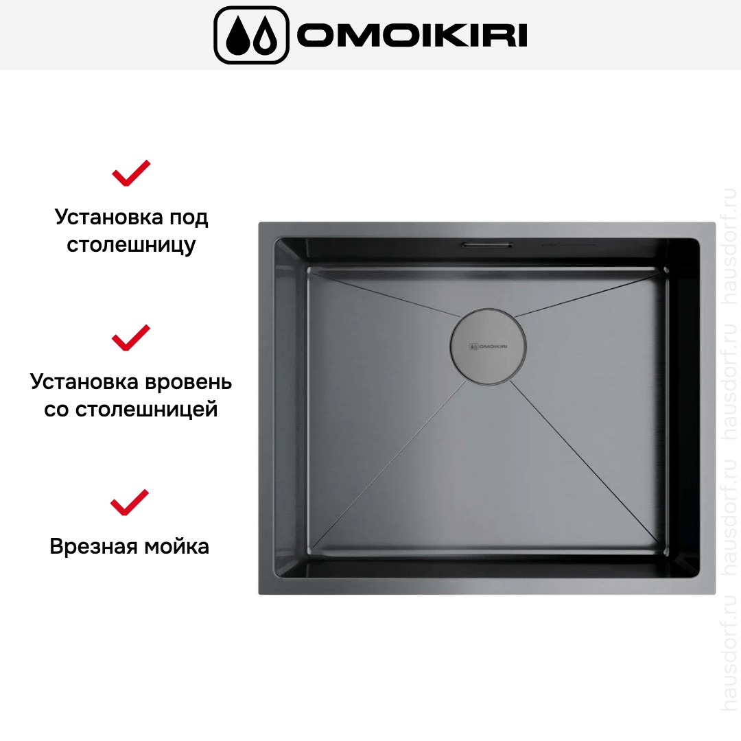 Обратите внимание на дизайнерские отличия мойки Омойкири, которые помогут в создании идеальной кухни в вашем доме. Она выполнена в цвете вороненая сталь. Основной материал — нержавеющая сталь, он гарантирует надежность и долгие годы службы без повреждений.