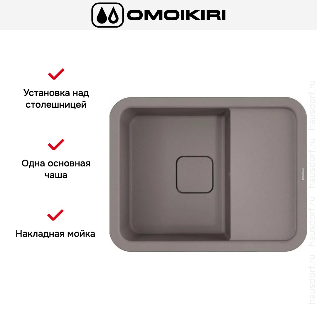 Накладная мойка Omoikiri — отличный выбор для тех, кто хочет создать гармоничное пространство с удобной сантехникой. простой в установке. Преимущество такой конструкции: легко подобрать практически к любой кухне и не придется демонтировать вместе с тумбой при ремонте или перестановке остальной мебели. Данная модель имеет стандартную форму, поэтому подходит большинству пользователей. Устанавливается над столешницей: это самый простой способ монтажа, зачастую с ним можно справиться даже без специалистов, главное — правильно рассчитать размеры ниши.
