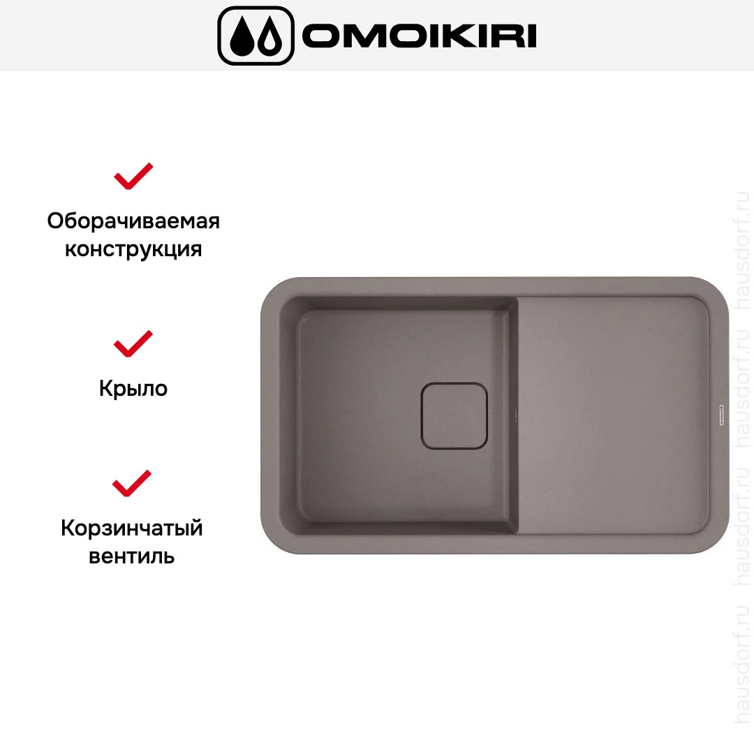 Обратите внимание на дизайнерские отличия мойки Омойкири, которые помогут в создании идеальной кухни в вашем доме. Она выполнена в цвете Серый Ленинград. Крыло, расположенное является дополнительным рабочим пространством, на котором можно сушить посуду, разделывать мясо и нарезать овощи.