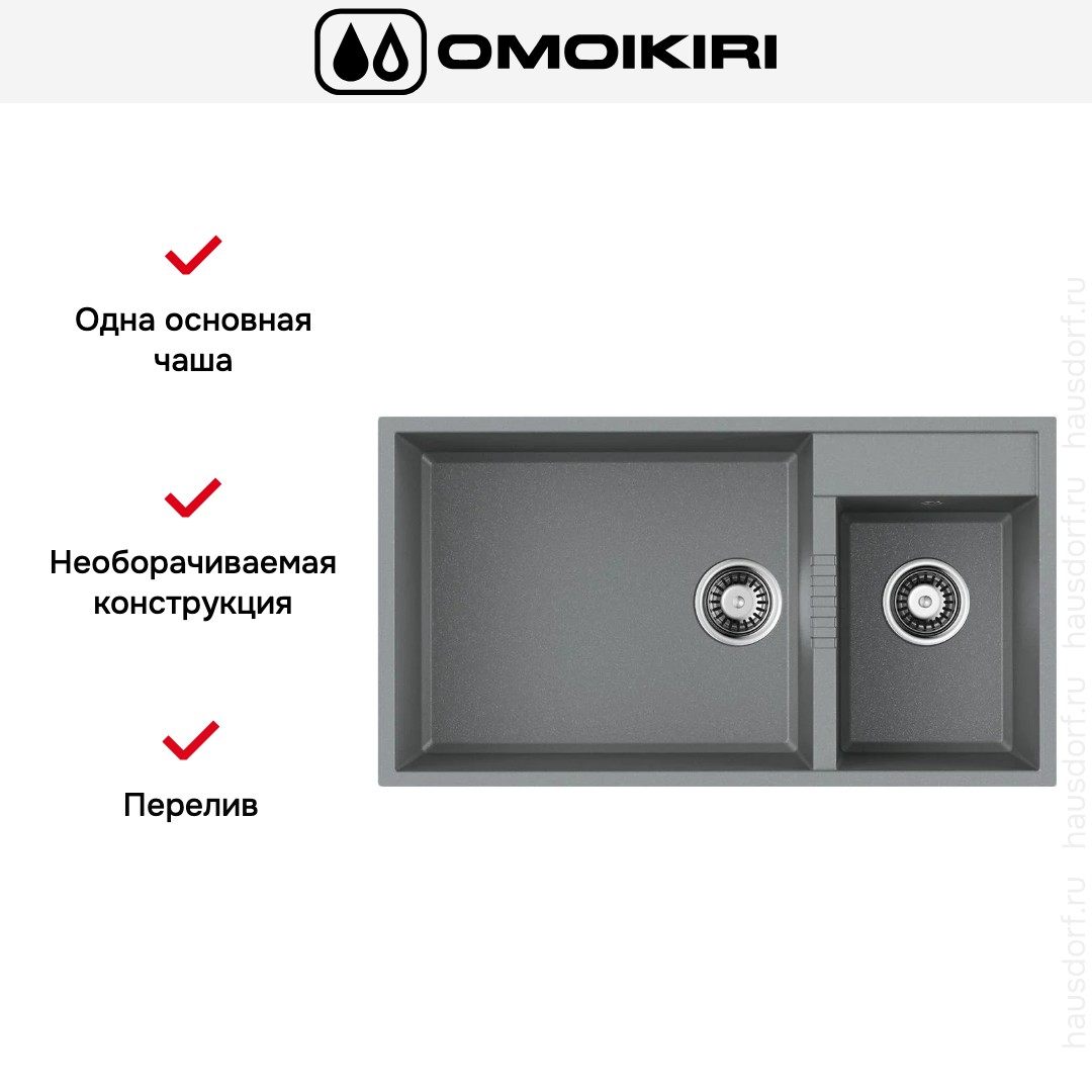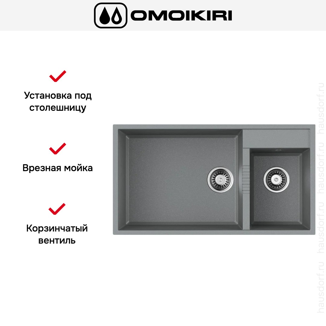 Мойка Omoikiri Tedori 85-2 U-GR. Это врезной прямоугольный аксессуар размерами 85×46.5 см, созданный для установки под столешницу и аккуратной интеграции в рабочую поверхность.