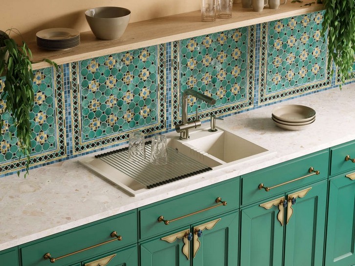 вровень со столешницей — создается ощущение бесшовного пространства, а если мойка сделана из того же материала, то и единого дизайна;