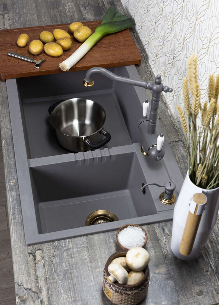 Глубина чаши — очень важная характеристика, на которую необходимо обратить внимание, подбирая вариант для вашей кухни. Выбирать следует одновременно мойку по глубине и смеситель по высоте излива: если не согласовать эти два размера, мыть посуду или подготавливать продукты перед готовкой будет неудобно из-за брызг. Глубина зависит от многих параметров: количества чаш, типа чаши — основной или дополнительной, даже материала изготовления, а также габаритов самой мойки. Кроме того, рекомендуется ориентироваться на пищевые привычки семьи — какие продукты и какая посуда используется чаще всего и поместится ли она в раковину.