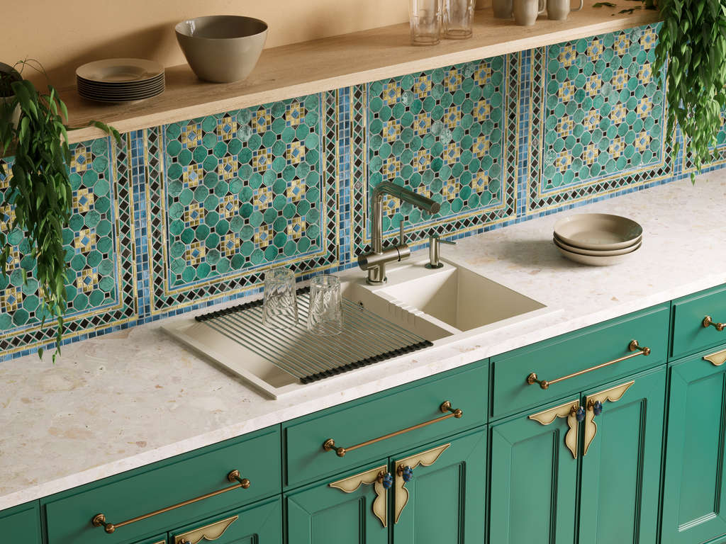 вровень со столешницей — создается ощущение бесшовного пространства, а если мойка сделана из того же материала, то и единого дизайна;