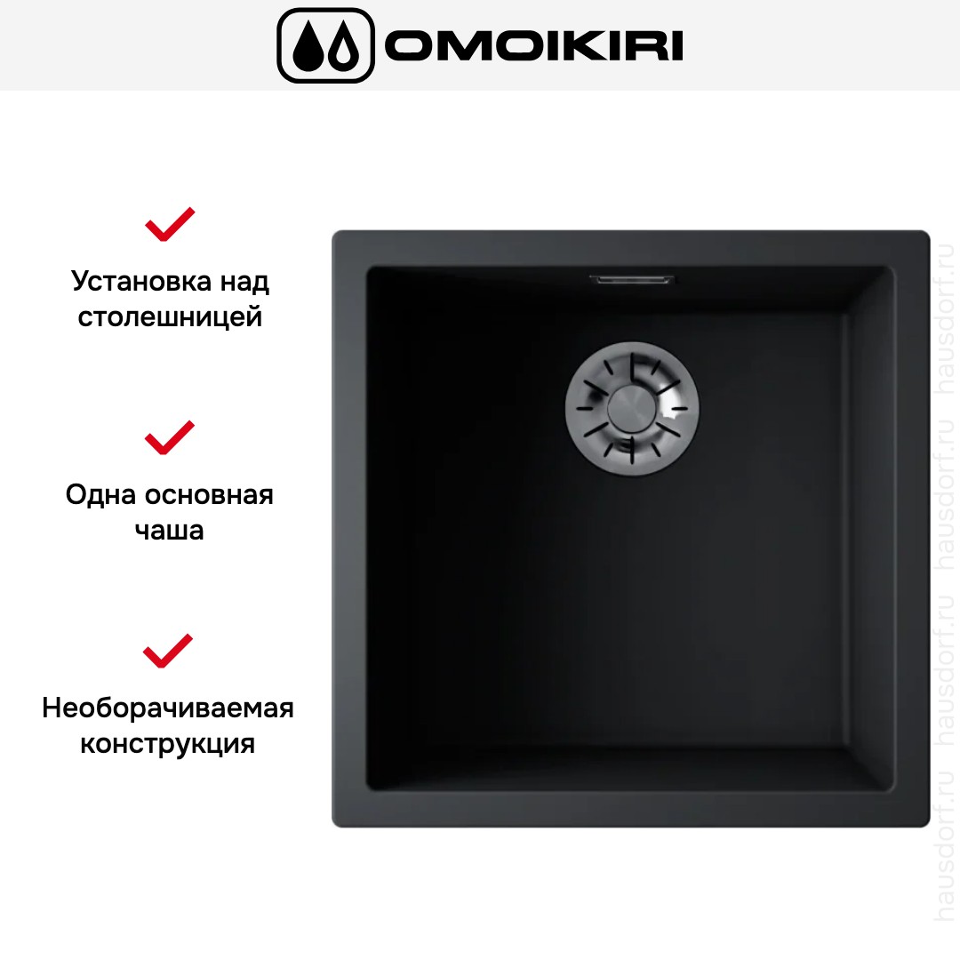 Врезная мойка Omoikiri — отличный выбор для тех, кто хочет создать гармоничное кухонное пространство с полностью вписывающейся в него сантехникой. Преимущество такой конструкции — плотное прилегание к столешнице, так как вырез подбирается индивидуально под габариты модели. Под стыки не попадает вода, поэтому срок службы значительно увеличивается, пользоваться ей удобно и приятно. Данная модель имеет стандартную форму, поэтому подходит большинству пользователей. Устанавливается под столешницу, благодаря чему не остается стыков, в которых копились бы загрязнения, а также увеличивается рабочая глубина. Устанавливается над столешницей: это самый простой способ монтажа, зачастую с ним можно справиться даже без специалистов, главное — правильно рассчитать размеры ниши.