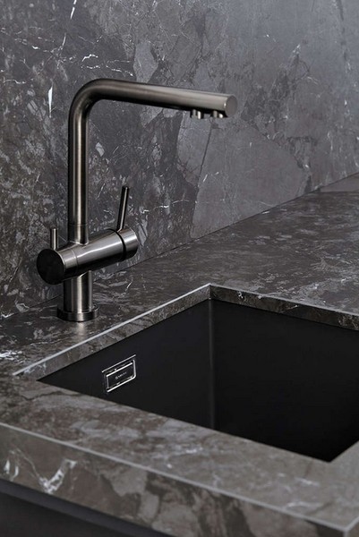 вровень со столешницей — создается ощущение бесшовного пространства, а если мойка сделана из того же материала, то и единого дизайна;
