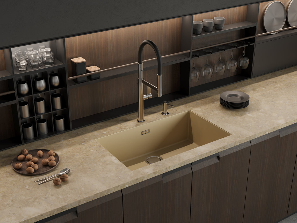 Обратите внимание на дизайнерские отличия мойки Омойкири, которые помогут в создании идеальной кухни в вашем доме. Она выполнена в цвете шампань.