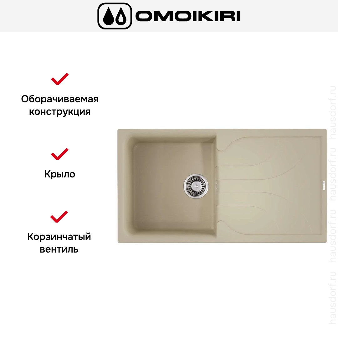 Мойка Omoikiri Yasugata 100 Be — накладная прямоугольная модель ванильного цвета, созданная для тех, кто ценит лаконичность и практичность. Она привлекает спокойным оттенком, который легко вписывается в интерьер как светлой, так и контрастной кухни. Гладкая, но слегка текстурированная поверхность придает ей премиальный вид и помогает скрывать мелкие следы эксплуатации.