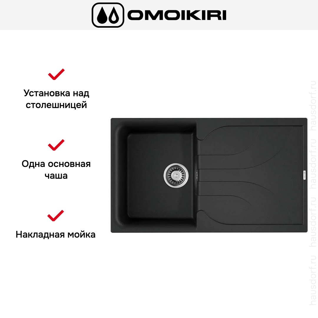 Накладная мойка Omoikiri — отличный выбор для тех, кто хочет создать гармоничное пространство с удобной сантехникой. простой в установке. Преимущество такой конструкции: легко подобрать практически к любой кухне и не придется демонтировать вместе с тумбой при ремонте или перестановке остальной мебели. Данная модель имеет стандартную форму, поэтому подходит большинству пользователей. Устанавливается над столешницей: это самый простой способ монтажа, зачастую с ним можно справиться даже без специалистов, главное — правильно рассчитать размеры ниши.