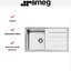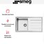 Мойка Smeg LDR861-2 врезного типа из матовой нержавеющей стали имеет прямоугольную форму со скругленными углами и оснащена крылом — то есть горизонтальной поверхностью с желобами-водостоками. Модель с одной чашей является оборачиваемой и может устанавливаться с крылом справа или слева. Глубина чаши составляет 20 см, что позволяет мыть объемную посуду. Для защиты столешницы от воды служит бортик. Мойка Смег LDR861-2 комплектуется уплотнительной лентой и фиксирующими зажимами для легкой установки.