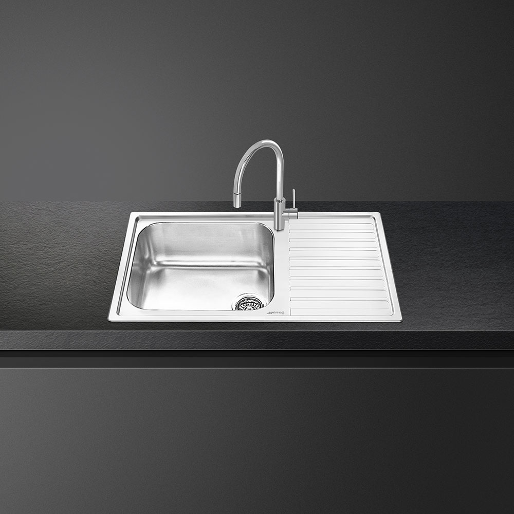 Мойка из сатинированной нержавеющей стали. В комплекте сифон с возможностью подключения посудомоечной или стиральной машины. Прямоугольная необорачиваемая модель шириной 86 см оснащена правым крылом шириной 36 см. Имеется возможность установки вровень со столешницей или поверх нее. Толщина стали составляет 0,7 мм — модель отличается особой прочностью и долговечностью. Отверстие для смесителя расположено справа.