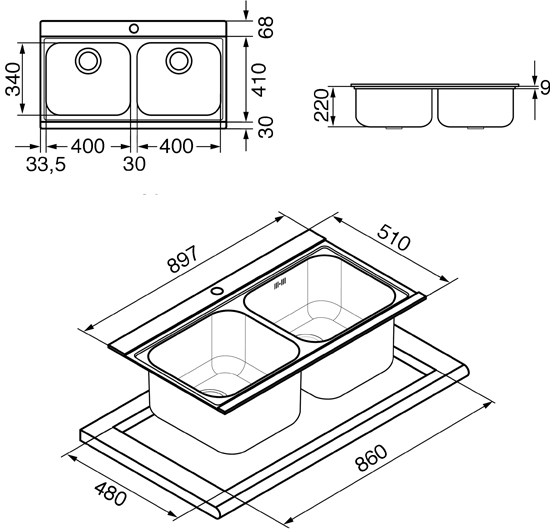 База — это шкаф, в который вы планируете устанавливать мойку. Данный параметр обозначает минимальную ширину между боковые стенками. Именно столько нужно, чтобы правильно разместить всю сантехнику.