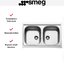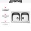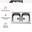 Материалом изготовления необорачиваемой мойки Smeg LYP792 послужила матовая нержавеющей сталь толщиной 0,6 мм. Модель с установкой на столешницу оснащена двумя глубокими чашами одинакового размера — шириной 33 см и глубиной 14,8 см. Установка с бортиком защищает кухонную мебель от попадания воды.