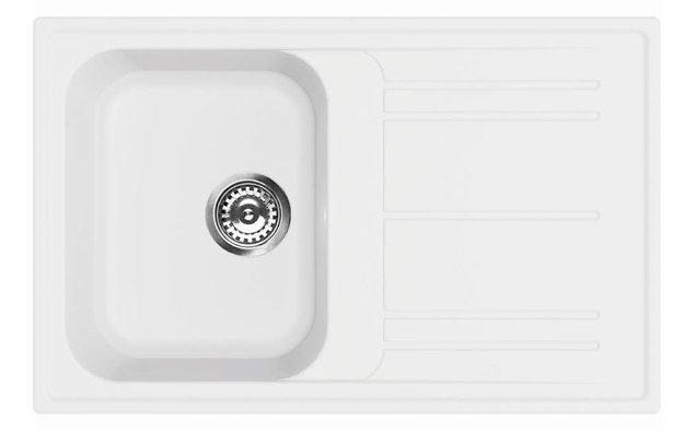 Белая врезная мойка устанавливается в базу 45 см. Конструкция оборачиваемая, поэтому вы можете расположить крыло с любой стороны. В комплекте уплотнительная лента, вентиль 3 "½, зажимы и сифон.