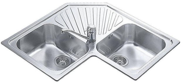 Круглые и овальные мойки смотрятся эффектно и стильно, у них отсутствуют углы, так что уход не составляет труда. При одинаковом объеме круглая мойка будет казаться меньше, чем квадратная. Такие модели часто используют в классическом интерьере. Установка такой мойки требует круглого отверстия в столешнице, что также достаточно просто сделать. Угловые мойки позволяют заполнить пространство в углах, экономя место в помещении. Раковины в них могут быть различной формы, а место за мойкой можно использовать для хранения. Мойки в форме трапеции выглядят свежо и оригинально, но подойдут не для всякого интерьера.