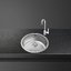 Круглая форма придаёт изделию особую выразительность, привнося в интерьер нотку современности и изящества. Такая форма органично сочетается как с классическими, так и с ультрасовременными кухонными гарнитурами, становясь центральным декоративным элементом рабочей зоны. Врезной способ установки обеспечивает плавный переход от столешницы к краю мойки, упрощает уход за поверхностью и подчёркивает целостность дизайна.