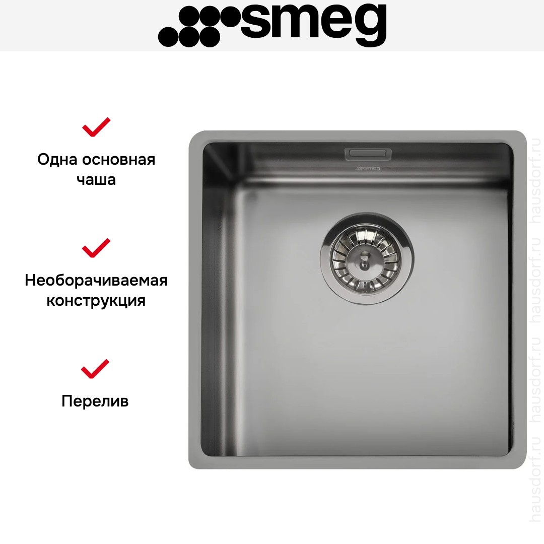 Мойка Smeg VSTR40DKX — элегантная врезная модель квадратной формы, созданная для тех, кто ценит лаконичность, функциональность и современный эстетизм. Её габариты — 44×44 см — обеспечивают симметричное и сбалансированное внутреннее пространство, где глубина чаши равна ширине, что способствует эффективному использованию объёма и минимизирует разбрызгивание воды. Такая геометрия не только практична, но и придаёт изделию визуальную гармонию и строгость линий.
