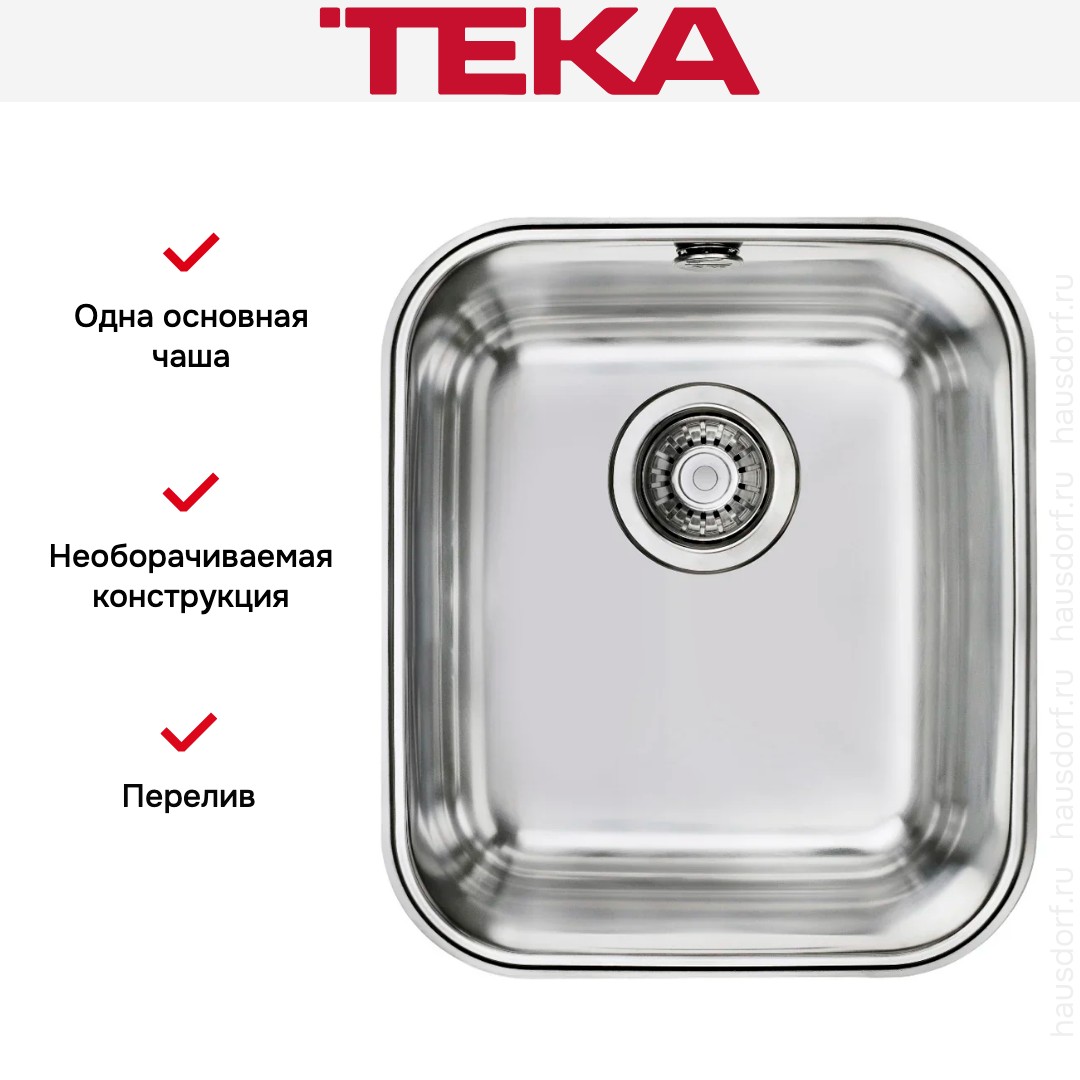 Мойка Teka BE 34 40 20 PLUS — врезная прямоугольная модель с полированной нержавеющей сталью, созданная для тех, кто ценит минимализм и практичность. Ее габариты 36.7×42.7 см и ширина монтажной базы 40 см делают изделие компактным, но функциональным. Одно основное углубление 34×40 см и вертикальная глубина 20 см обеспечивают удобство работы с посудой и приготовления пищи.