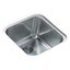Необорачиваемую мойку можно установить только в одном положении — поэтому при наличии крыла необходимо заранее продумать, как вы хотите ее разместить. Модель имеет одно отверстие для смесителя, может быть разной формы — круглой, квадратной, прямоугольной и нестандартной. Изготавливаются из разных материалов.