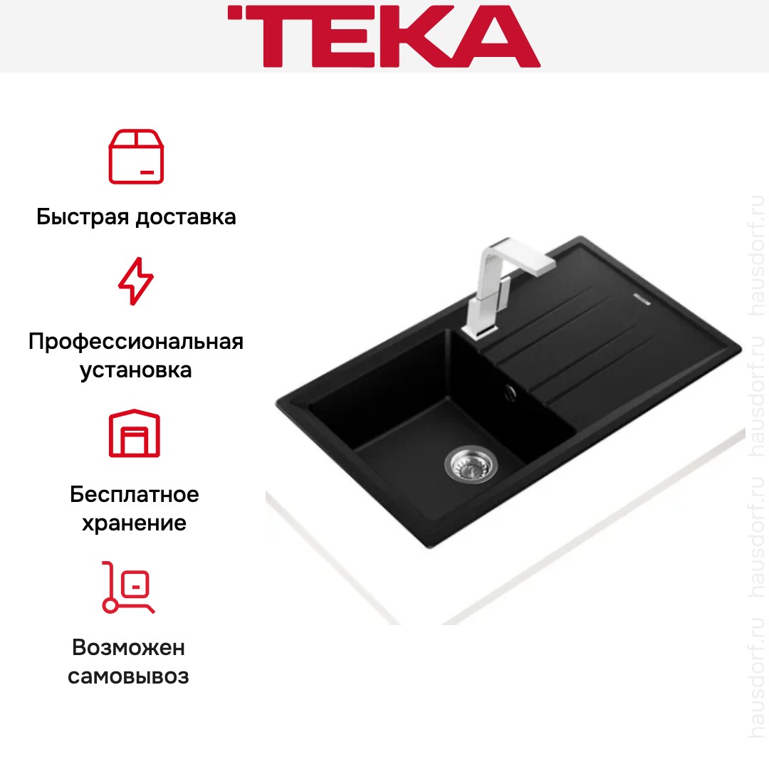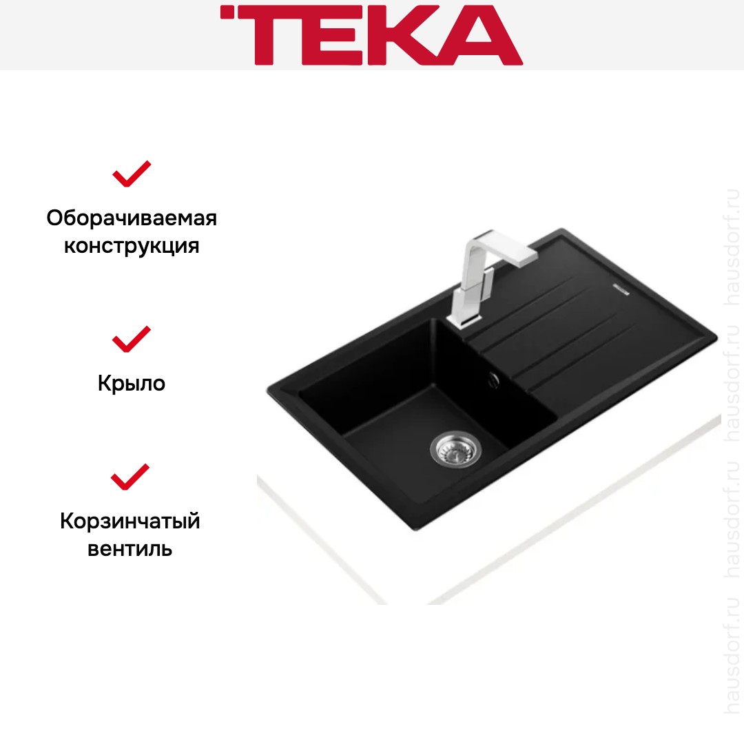 Обратите внимание на дизайнерские отличия мойки Тека, которые помогут в создании идеальной кухни в вашем доме. Она выполнена в цвете матовый черный. Крыло, расположенное слева или справа, является дополнительным рабочим пространством, на котором можно сушить посуду, разделывать мясо и нарезать овощи.