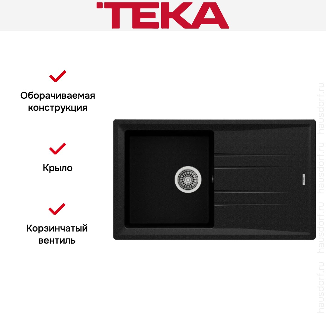Обратите внимание на дизайнерские отличия мойки Тека, которые помогут в создании идеальной кухни в вашем доме. Она выполнена в цвете матовый черный. Крыло, расположенное слева или справа, является дополнительным рабочим пространством, на котором можно сушить посуду, разделывать мясо и нарезать овощи.