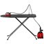 Профессиональный утюг подсоединен к емкости с водой, расположенной в корпусе с подставкой. Вы можете использовать такой утюг как на горизонтальной доске для глажки, так и при обработке вещей на вешалке.