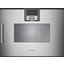 Gaggenau BSP220111 — встраиваемая пароварка с внешней генерацией пара. Рабочая камера выполнена из нержавеющей стали, предусмотрены 4 уровня направляющих для противней и LED-освещение. Управляется с помощью поворотных переключателей и сенсорного TFT-дисплея, где отображаются индикаторы температуры и уровня воды.
