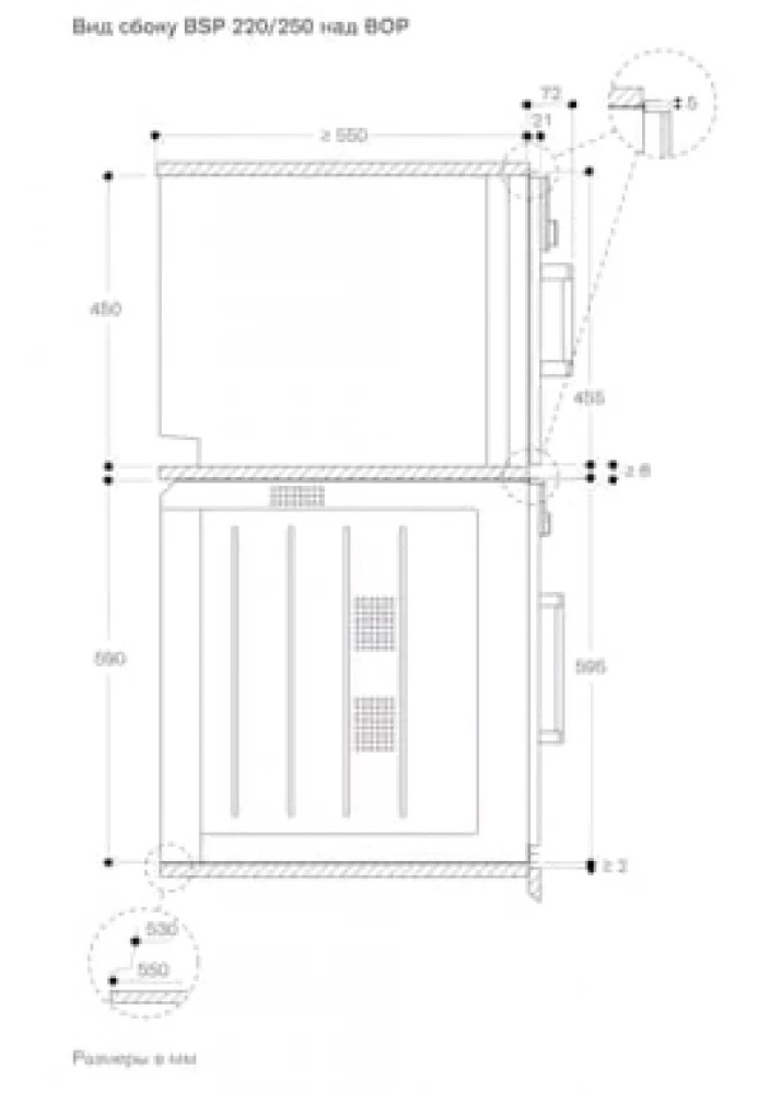 Между прибором и фасадами соседних шкафов необходимо предусмотреть зазор мин. 5 мм