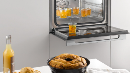 Программа «Конвекция плюс» в комбинированных паровых шкафах производства немецкой компании Miele представляет собой приготовление при помощи вентилятора и кольцевого нагревательного элемента, расположенного на задней стенке камеры. Этот режим позволяет готовить несколько блюд одновременно на нескольких уровнях. Кольцевой элемент размещается по периметру задней стенки: как следует из названия, он представляет собой замкнутый контур, внутри которого находится мощный вентилятор. При вращении вентилятор перемещает горячий воздух в горизонтальном направлении, так что тот проходит между противнями и равномерно распределяется по всей камере. Отдельные потоки воздуха разделяются металлическими или стеклянными поддонами и практически не смешиваются между собой. При размещении в пароварке нескольких блюд их вкусы и ароматы остаются неизменными. Длительность приготовления сокращается вдвое и даже втрое, снижается и потребление электроэнергии. Все блюда пропекаются равномерно, не пересыхают и не подгорают. Режим может использоваться самостоятельно или в сочетании с подачей пара — например, для выпечки пирогов, хлеба, приготовления запеканок и рулетов.