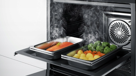 Программа выбирается при помощи кнопок на панели управления или меню, которое отображается на дисплее. Предварительно необходимо проследить, чтобы резервуар был заполнен свежей прохладной питьевой водой. Для более интенсивного воздействия пара рекомендуется использовать перфорированные противни, устанавливая их на среднем уровне в камере. После запуска программы вода нагревается и в парогенераторе превращается в пар, который и поступает в камеру. На последнем этапе приготовления можно добавить другие режимы для получения румяной корочки — например, гриль.