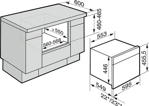 - Габариты ниши для встраивания (ВхШхГ): 44.8-45.2 х 56-56.8 х 55.5 см