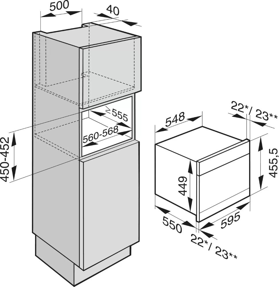 Ширина встраиваемых пароварок в большинстве случаев соответствует ширине стандартной кухонной тумбы и может варьироваться в пределах от 57 до 60 см. Эти устройства предназначаются для встраивания в колонну с другой бытовой техникой — такой, как духовые шкафы, микроволновки или подогреватели посуды. Подобные многофункциональные пароварки отличаются большим выбором режимов приготовления и нередко оснащаются другими нагревательными элементами — например, грилем. Ряд производителей, в частности фирма Miele, предлагают также небольшие модели уменьшенного объема шириной около 50 см.