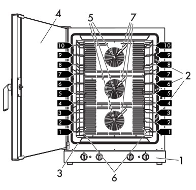 У данной модели электромеханическое управление, ручка Turn & Push позволяет легко выбирать программы и настройки параметров. Приготовление возможно сразу на 10 уровнях. Предусмотрено 3 вентилятора с возможностью реверсивного вращения, направление можно менять вручную.Система пароувлажнения осуществляется через прямой впрыск на каждый вентилятор. Возможно подключение к водопроводу через резьбовое соединение 3/4, расположенное на задней стенке устройства.