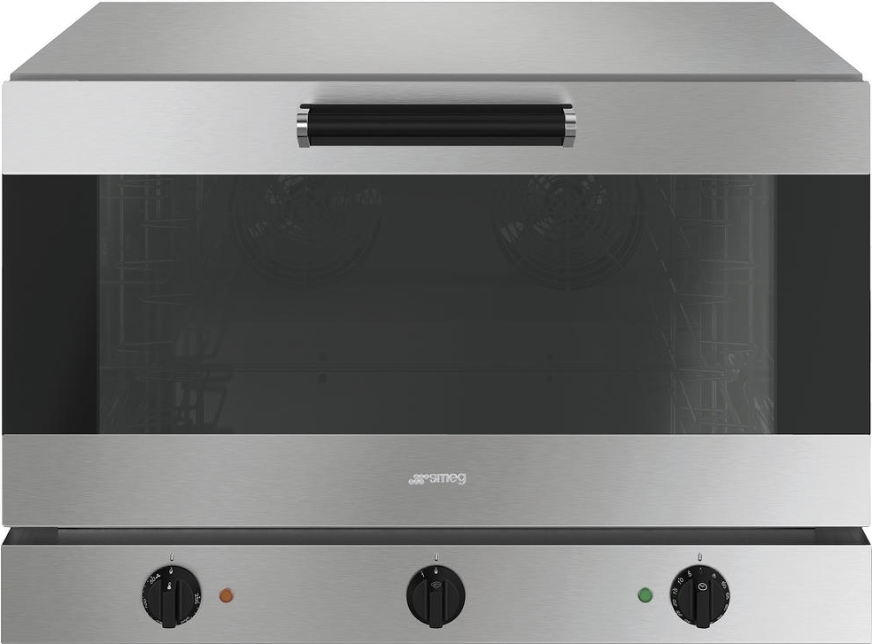 Smeg ALFA420MFH-2 — конвекционная печь с электромеханическим управлением. Имеет несколько режимов приготовления: гриль, конвекция, конвекция+пароувлажнение и статический нагрев. Корпус и рабочая камера изготовлены из нержавеющей стали. За безопасность эксплуатации отвечает двойное остекление дверцы, благодаря чему она остается холодной.