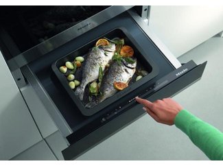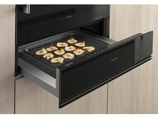 Встраиваемый подогреватель посуды можно установить в одну нишу с духовым шкафом или пароваркой без дополнительных зазоров. Благодаря разным программам можно не только подогреть тарелки, но и приготовить блюдо на низкой температуре.