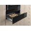 Подогреватель открывается нажатием на фронтальную панель — ящик выезжает на несколько сантиметров, полностью открыть камеру можно, потянув его до упора. Такой способ распространен в современной технике, благодаря этому вы можете собрать комплект из кухонных приборов без выпирающих ручек и создать «бесшовный» интерьер.