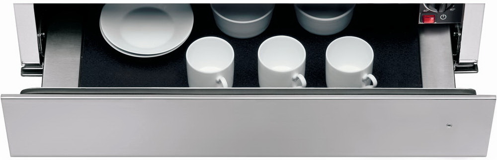 Шкаф для подогрева посуды высотой 14 см Kitchen Aid KWXXX 14600 предназначен для чашек и блюдец. Это необходимый атрибут для кофемашин, т.к. эспрессо наливается только в подогретую чашку, чтобы избежать горького вкуса. Также подогреватель можно использоваться для подогрева тарелок, подъема дрожжевого теста, приготовления соусов и десертов при температуре 70°, оттаивания продуктов. Прибор монтируется в нишу высотой 14 см.