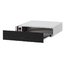 Подогреватель открывается нажатием на фронтальную панель — ящик выезжает на несколько сантиметров, полностью открыть камеру можно, потянув его до упора. Такой способ распространен в современной технике, благодаря этому вы можете собрать комплект из кухонных приборов без выпирающих ручек и создать «бесшовный» интерьер.