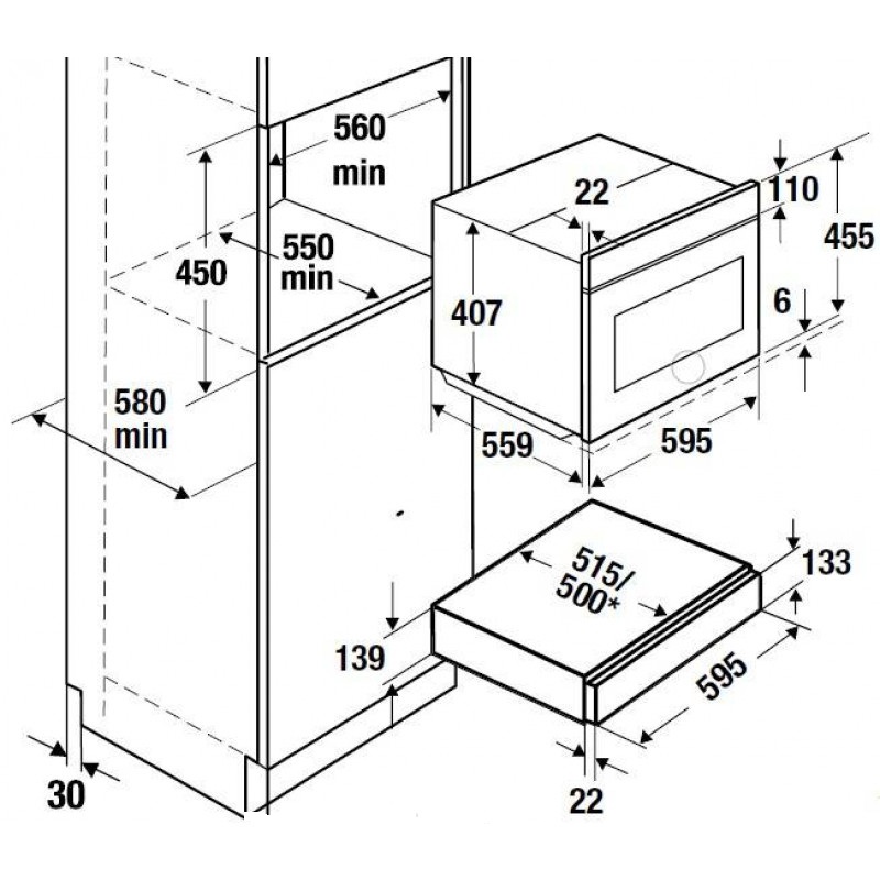 Идеально для совместной установки с приборами высотой 45 см в нишу высотой 59 см