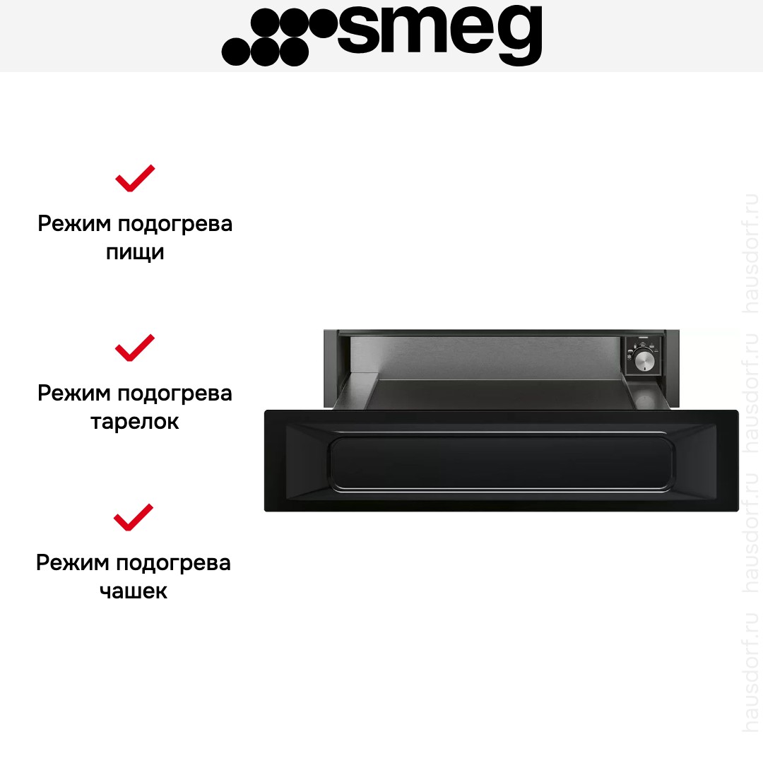 Подогреватель Smeg CPR915N оборудован системой открывания Push, что упрощает загрузку посуды в ящик и увеличивает комфорт эксплуатации. Устройство способно не только подогревать, но и, например, размораживать продукты.