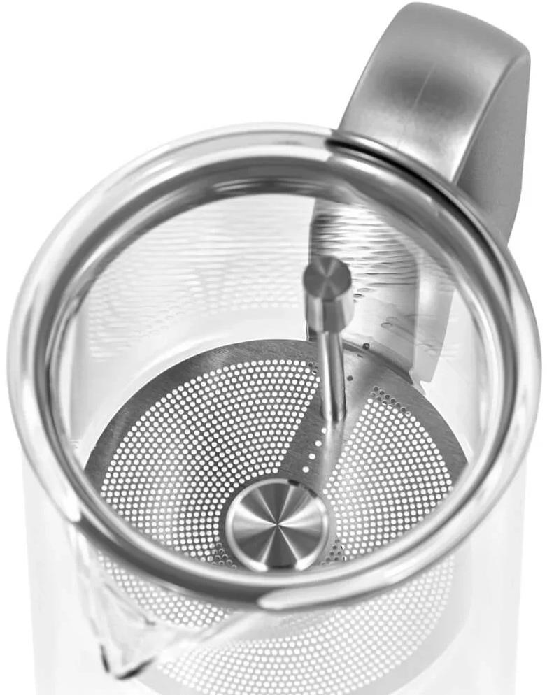 Магнитный механизм позволяет перелить напиток в отдельный резервуар чайника одним касанием: просто поверните крышку, чтобы оранжевая отметка совпала с центром ручки. Так вы можете контролировать степень насыщенности чая.